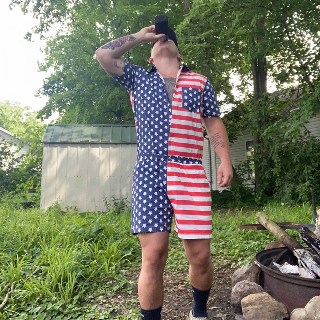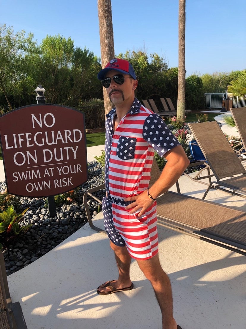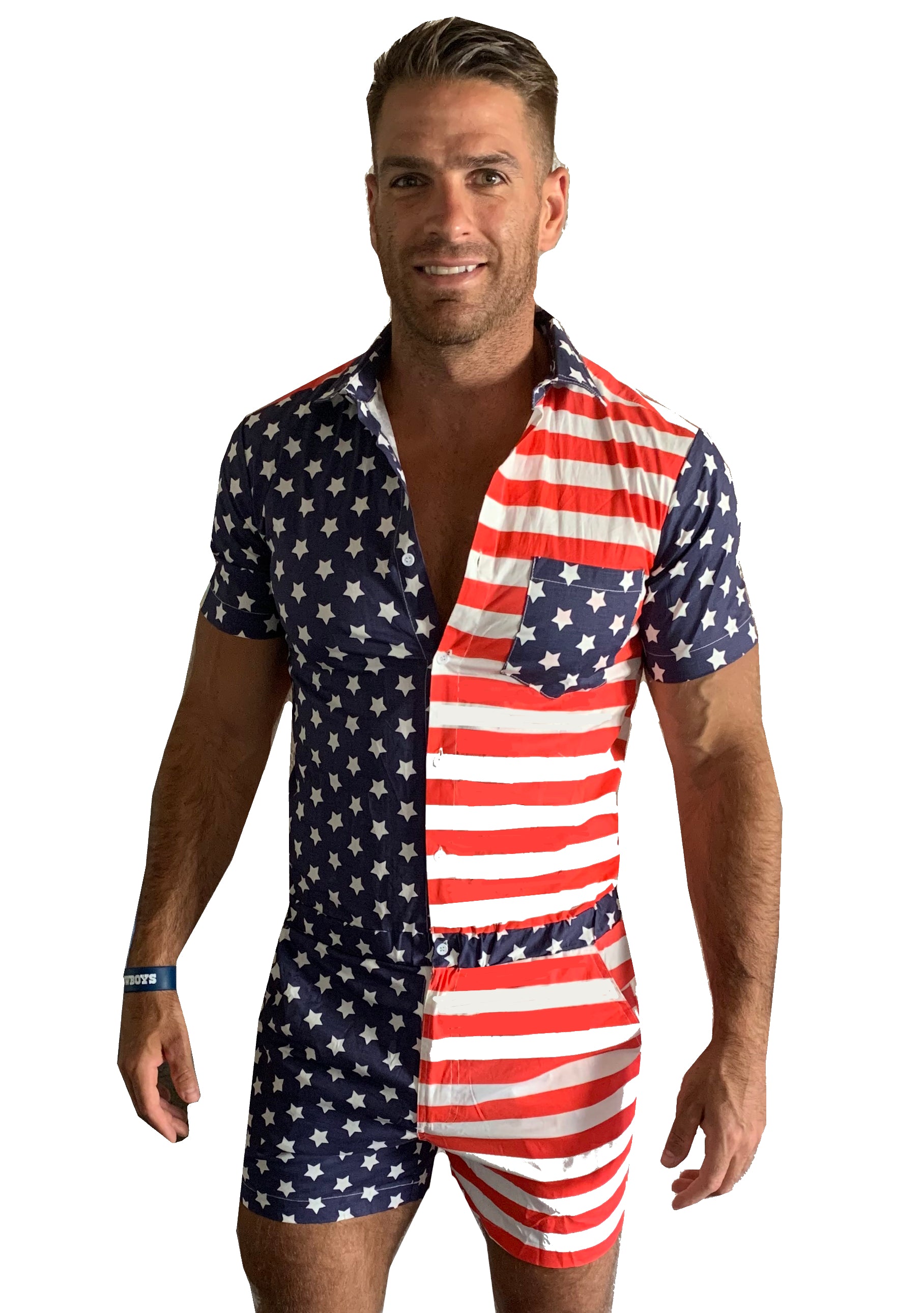 Caution: Our American Flag male romper may make you the center of attention, talk of the party, or the most confident person in the room. Please wear at your own risk. Side effects may include blindness by sheer patriotism.