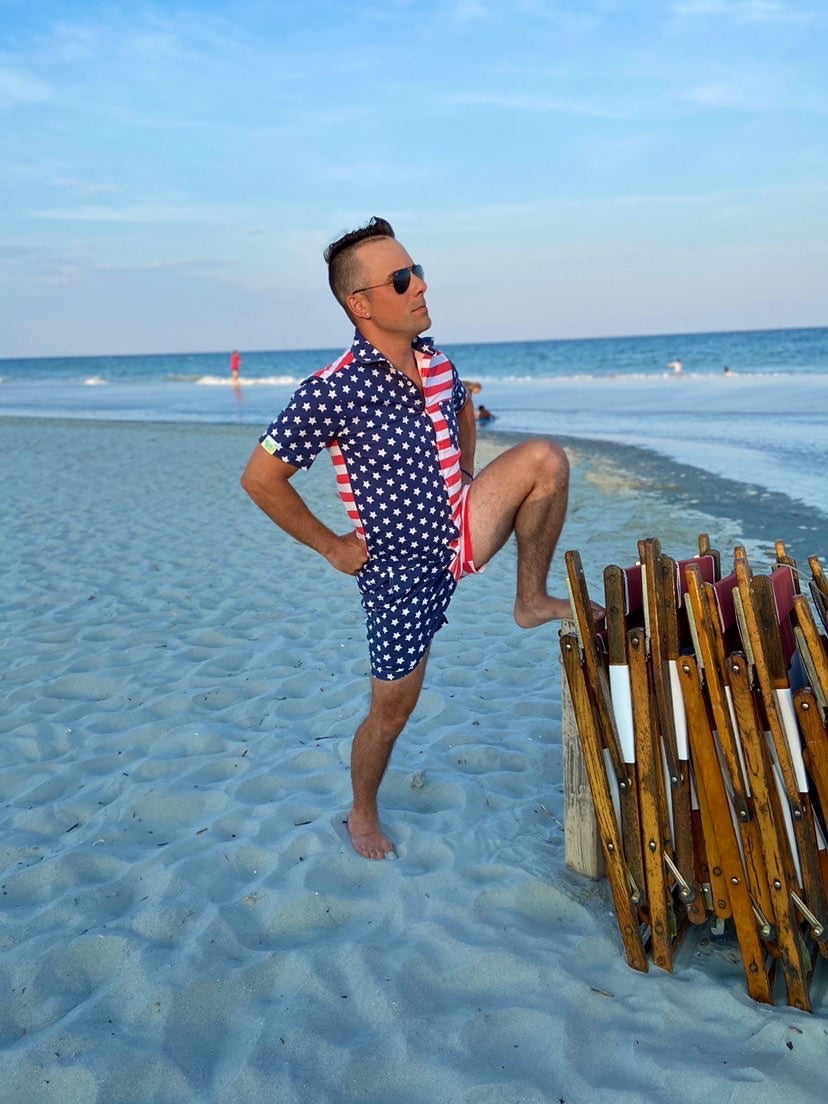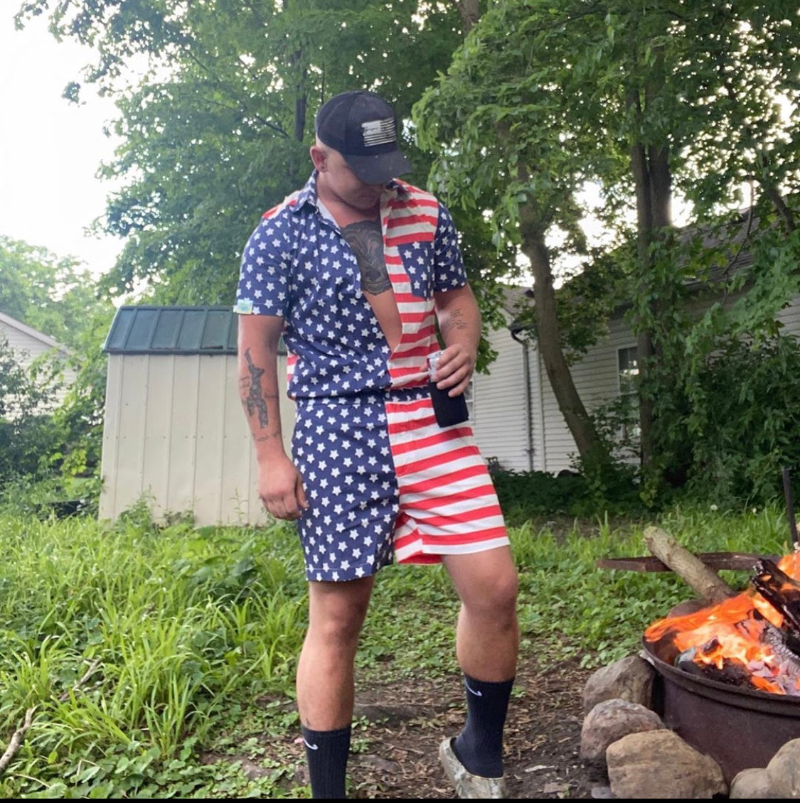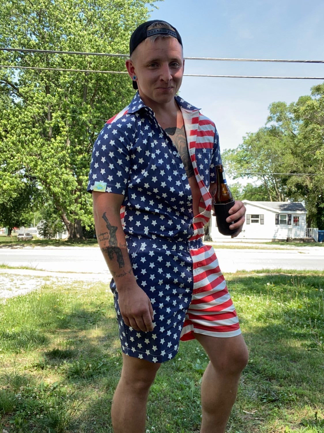 Caution: Our American Flag male romper may make you the center of attention, talk of the party, or the most confident person in the room. Please wear at your own risk. Side effects may include blindness by sheer patriotism.