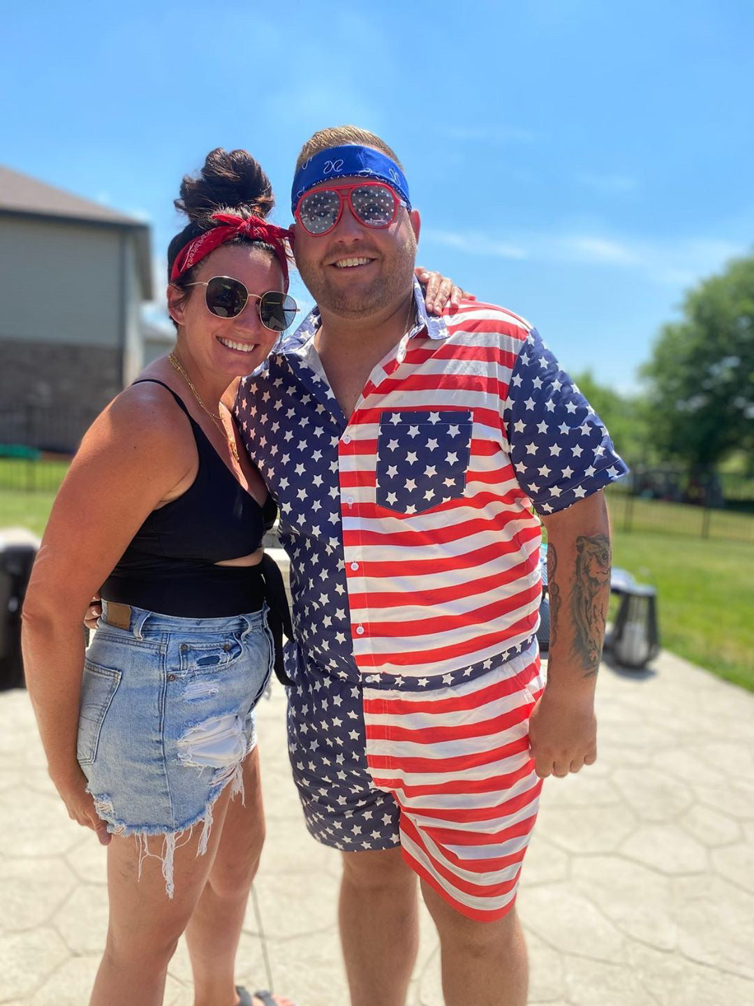 • I'm 5'7 and 206 lbs. Really stalky thick legs and just a little bit of a belly. I really need this American flag romper to set off 4th of july as the marine corps vet that I am. What size would I be. Please help me make the fore fathers proud