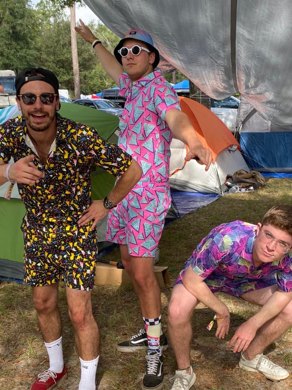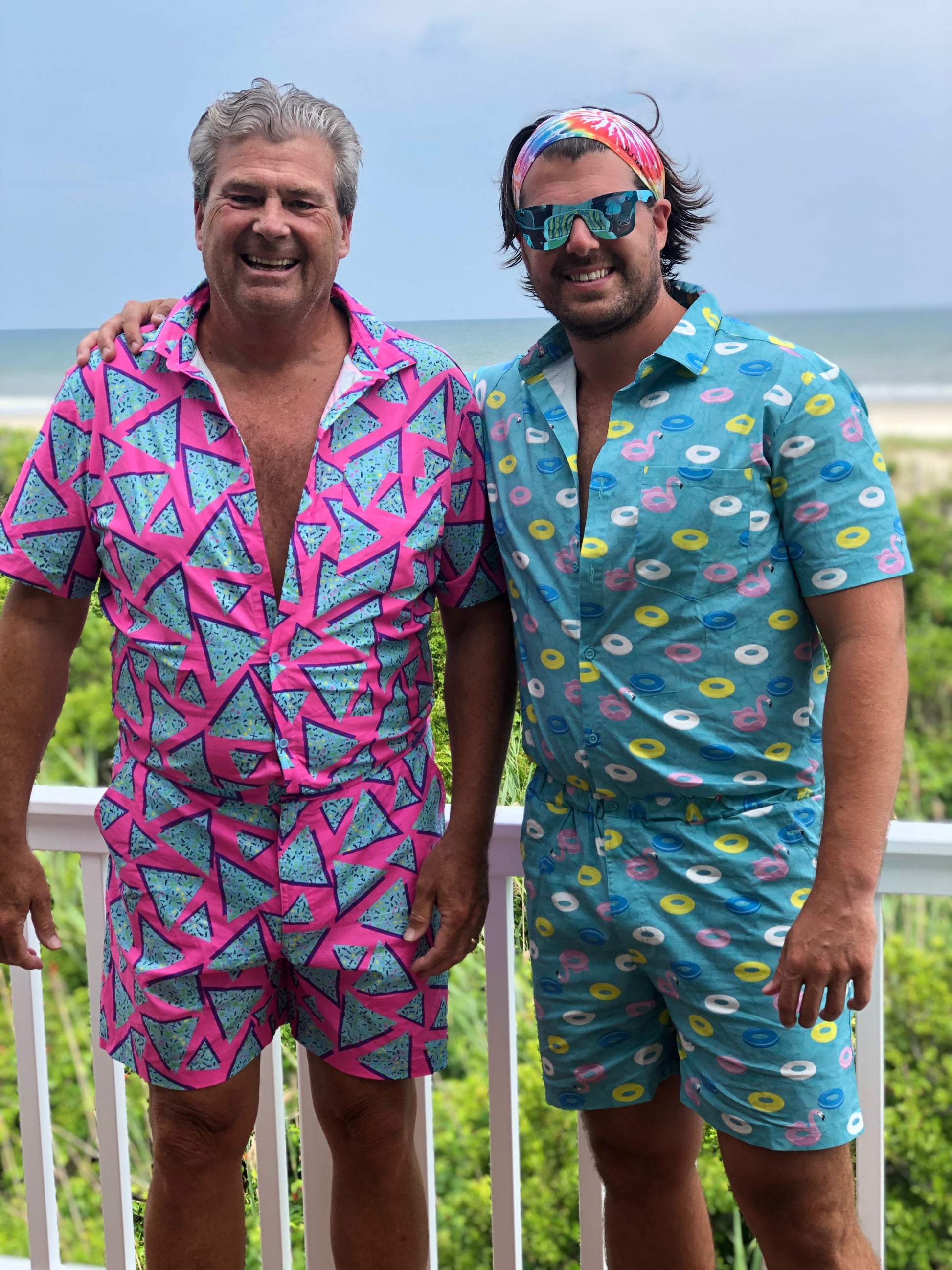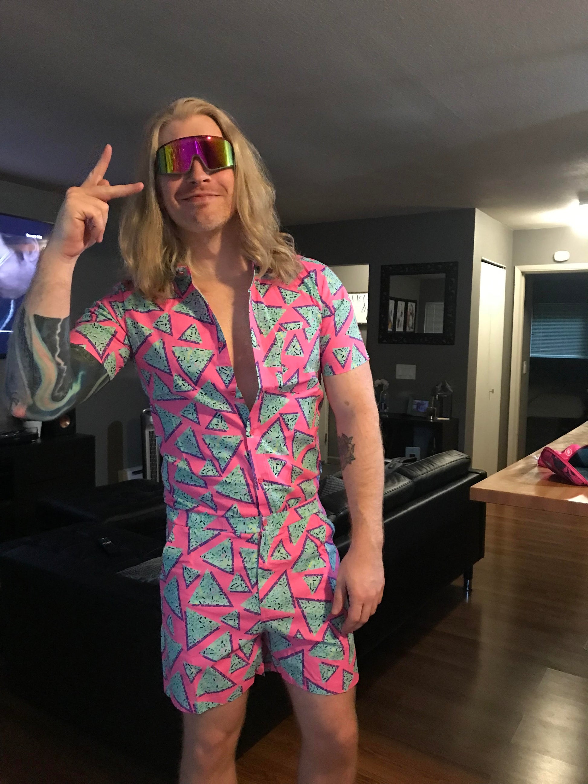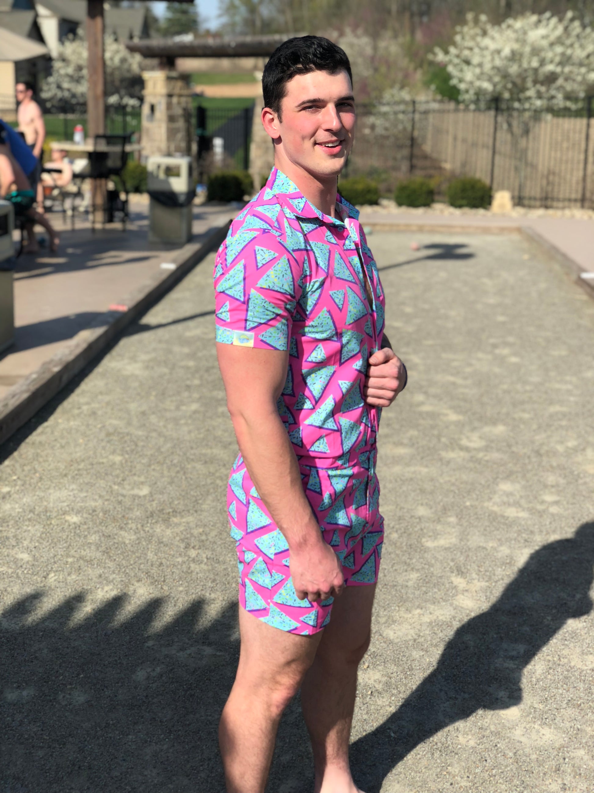 Here's a blast from the past - this 90's themed romper for men will have you partying like it's 1994! With it's stylish blue triangles, you'll be standing out in a crowd, no doubt!