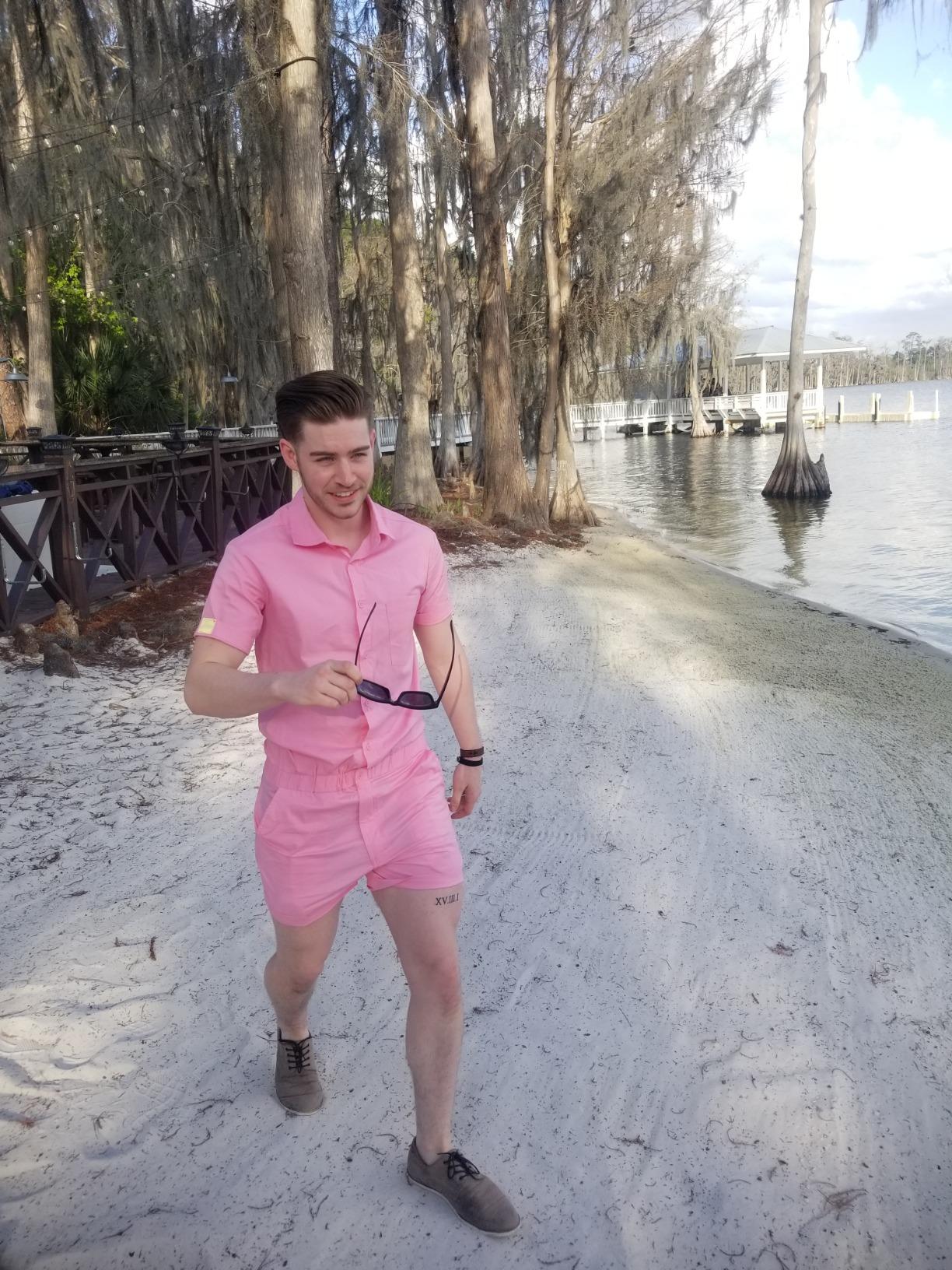If you have the cojones to rock it, don our Coral male romper and romp on!